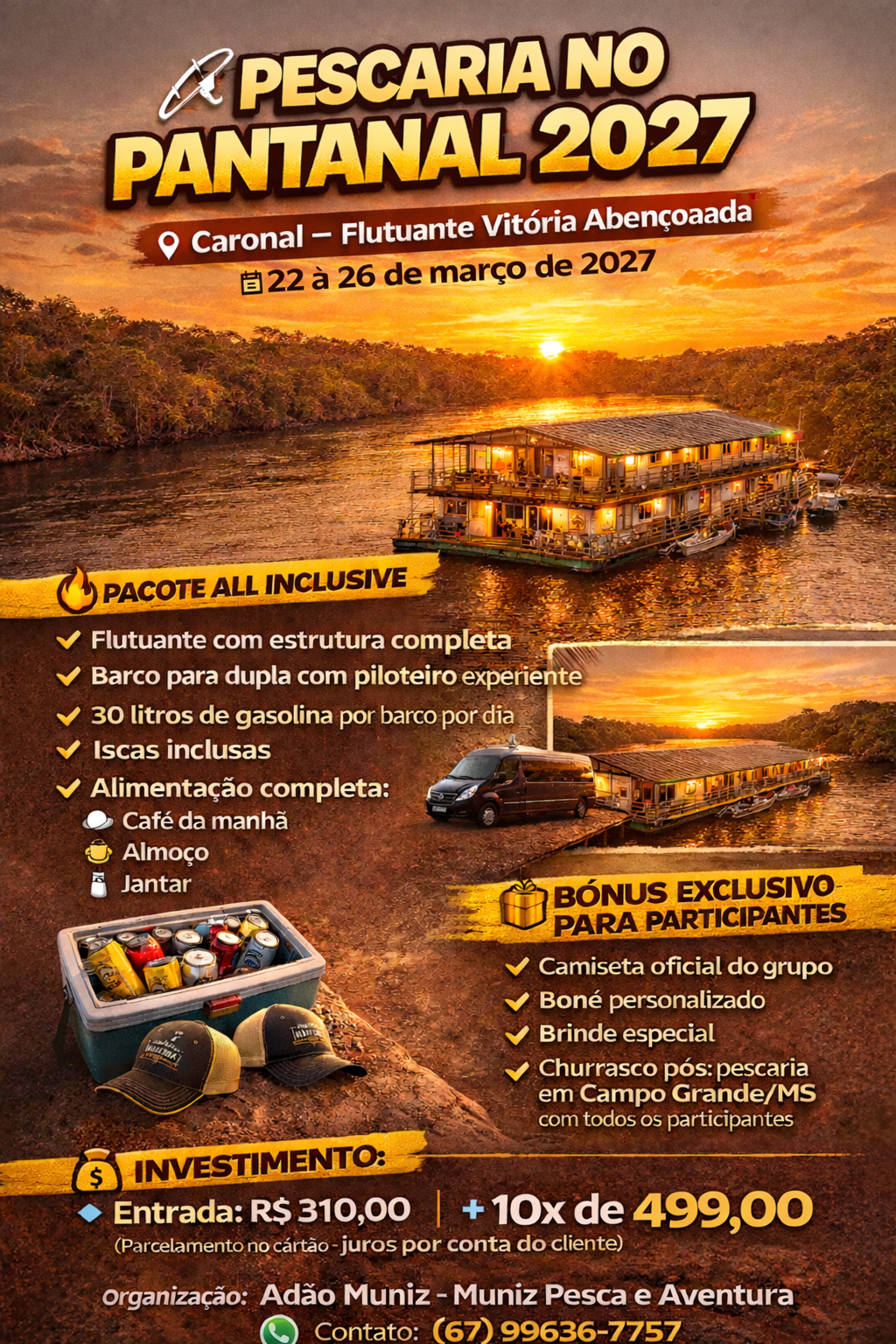 Trabalho também com pacotes de pesca no Pantanal!